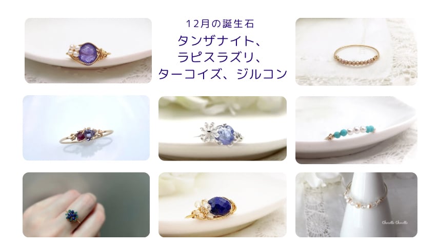 アクアマリン ピンクシェルと4種の天然石の指輪