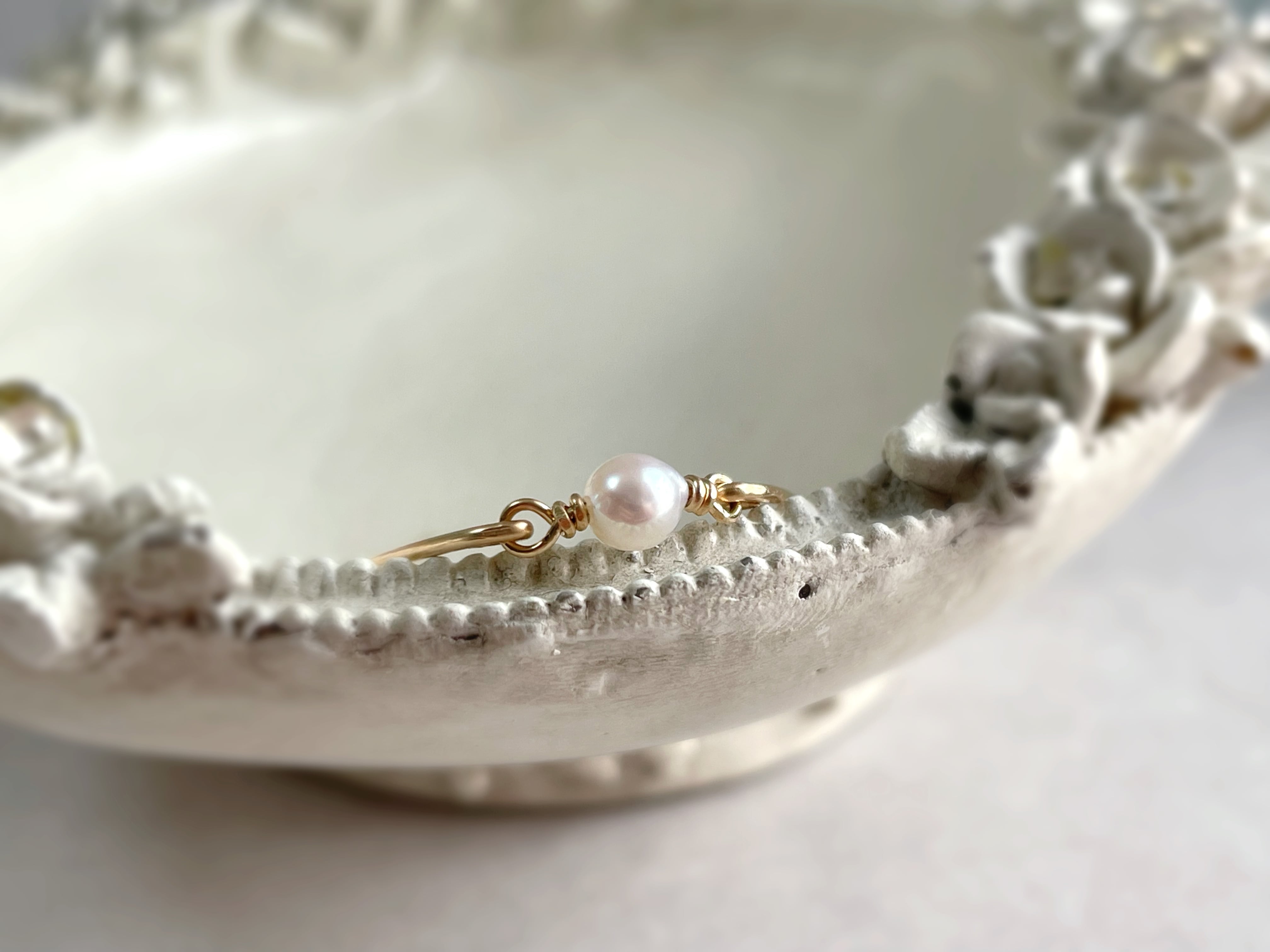 [14kgf]一粒淡水パールのシンプルワイヤーリング
