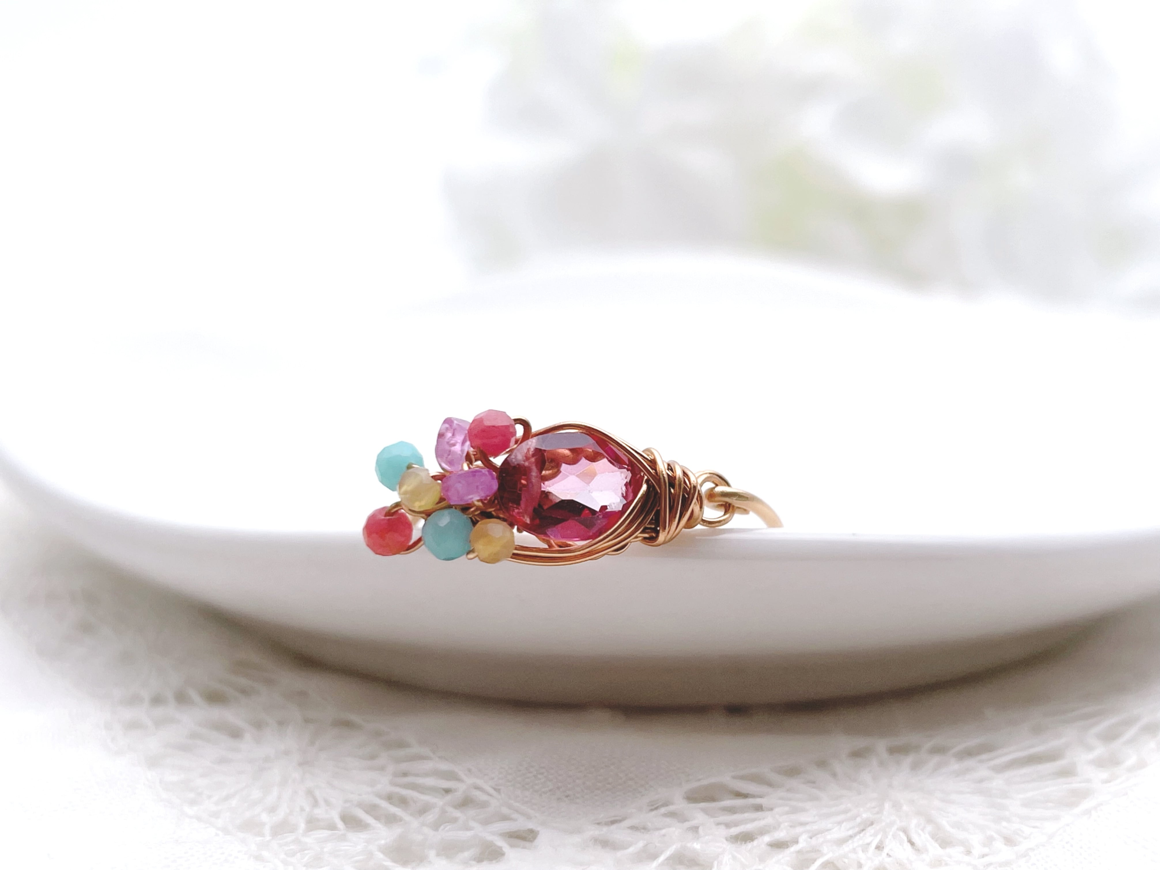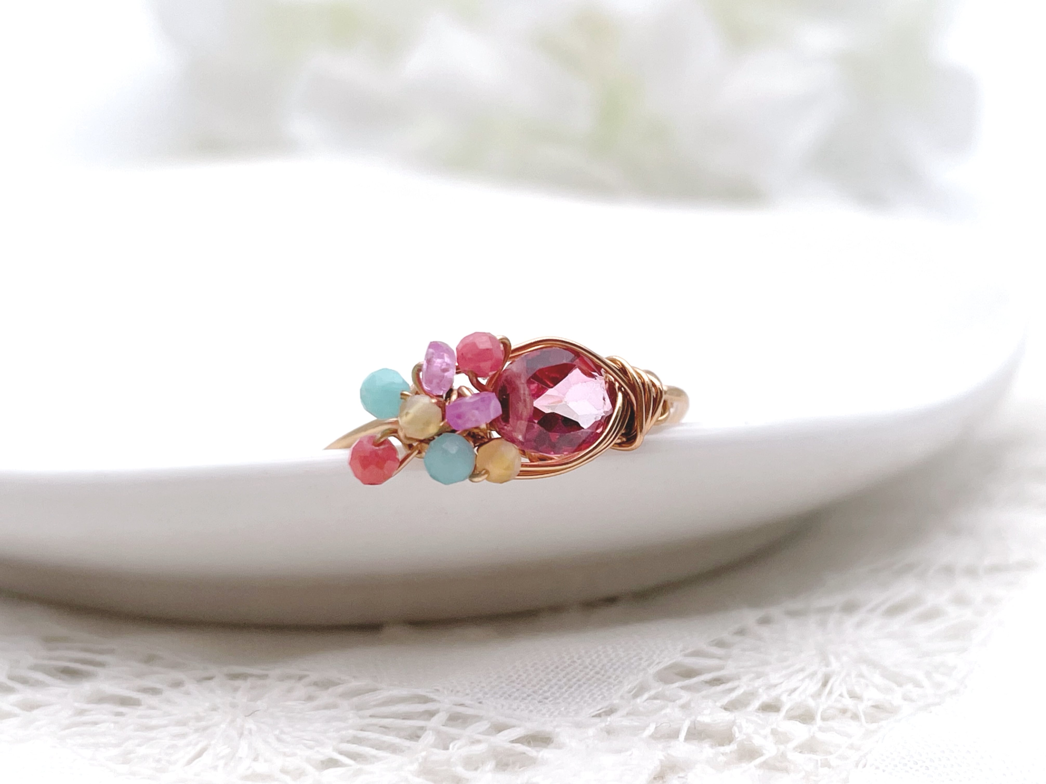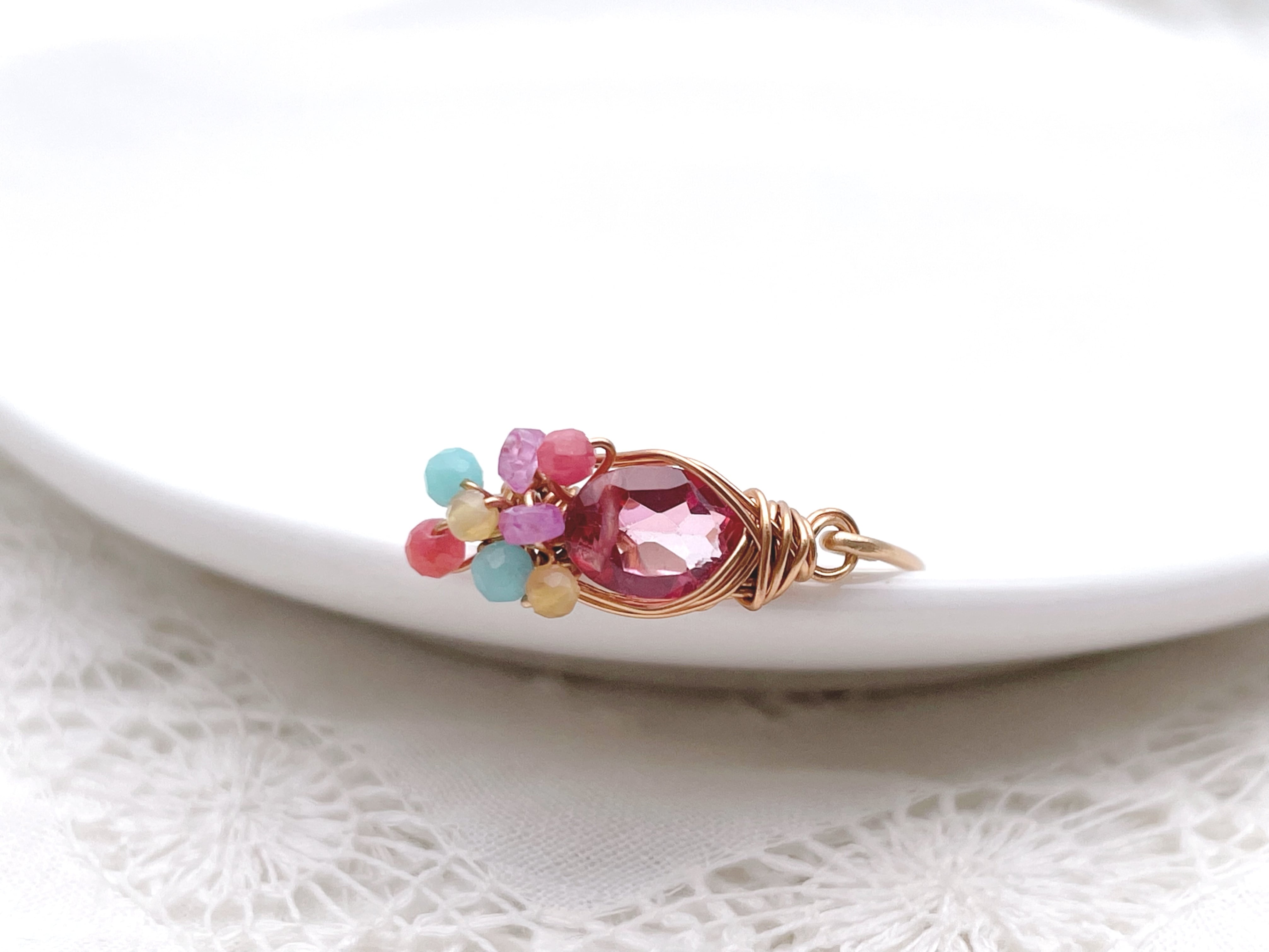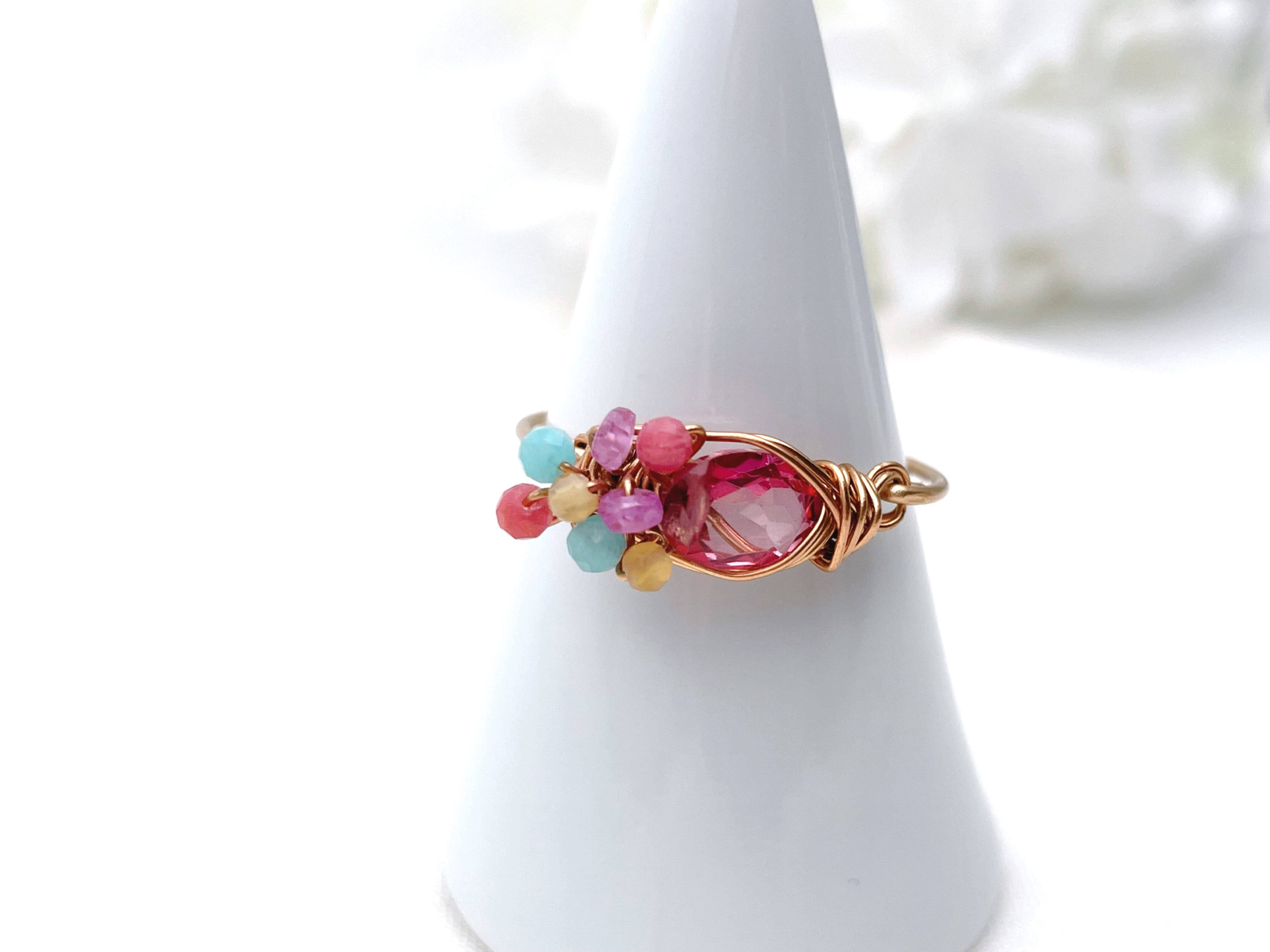 Marie's garden - ピンクトパーズと4種の小さな天然石のワイヤーリング
