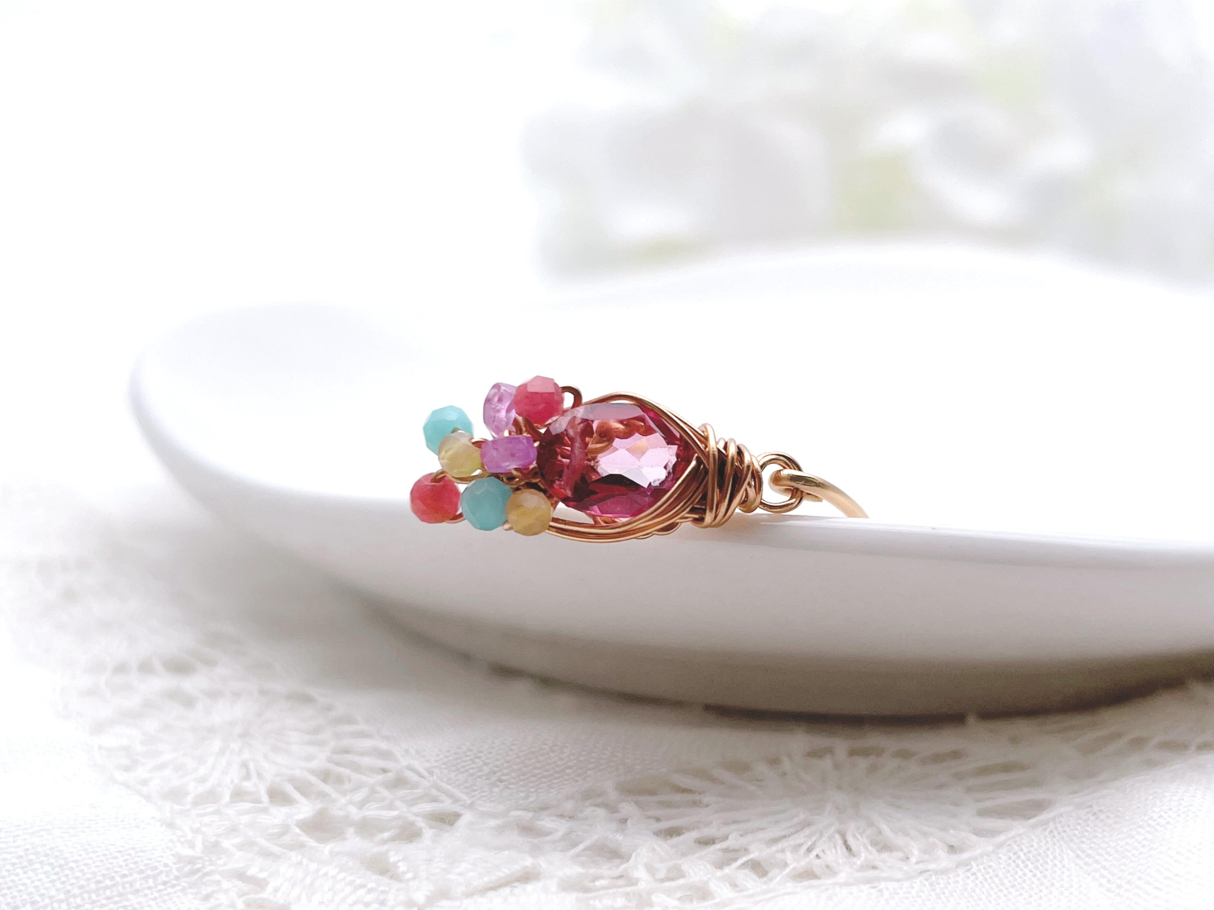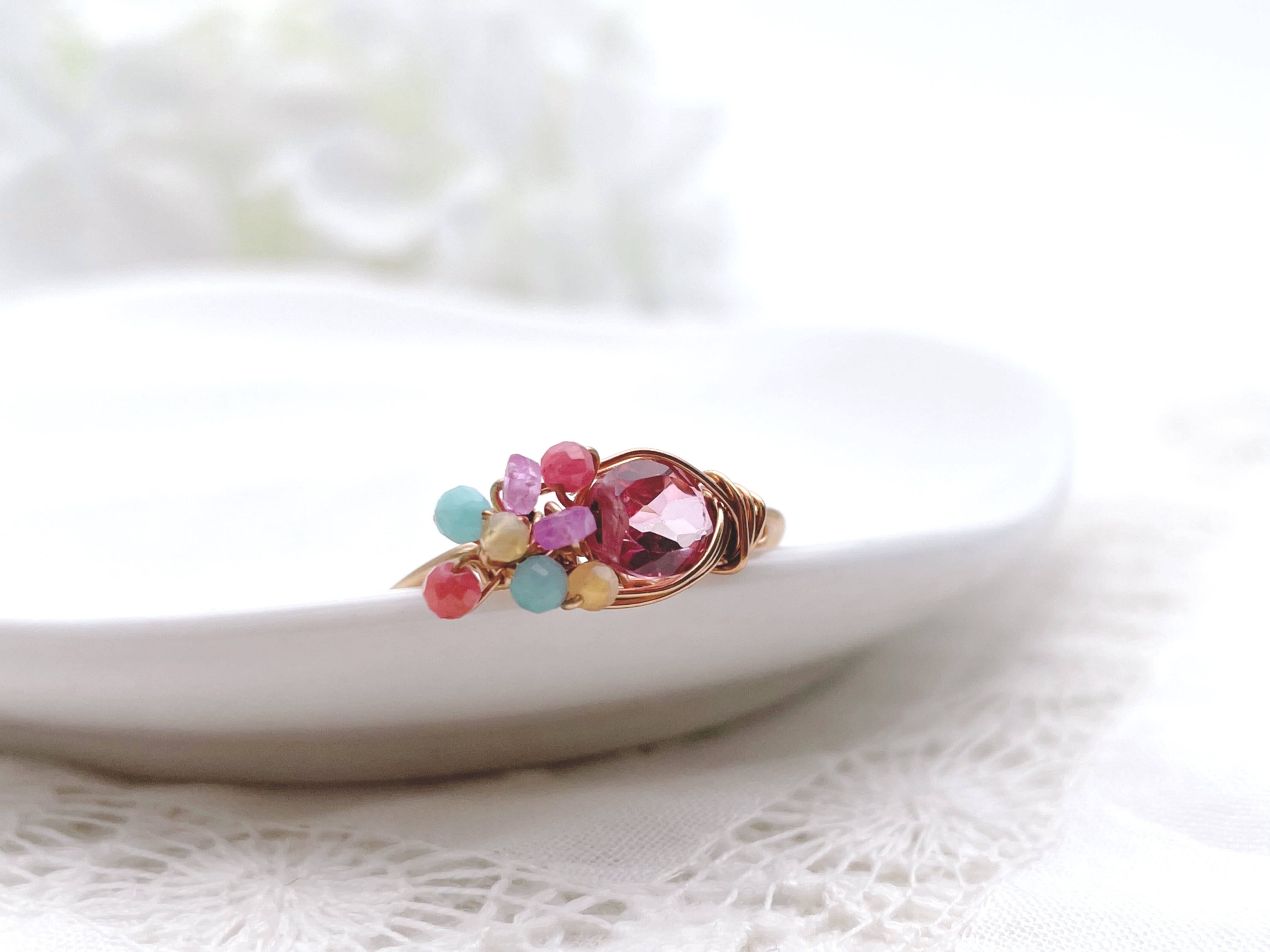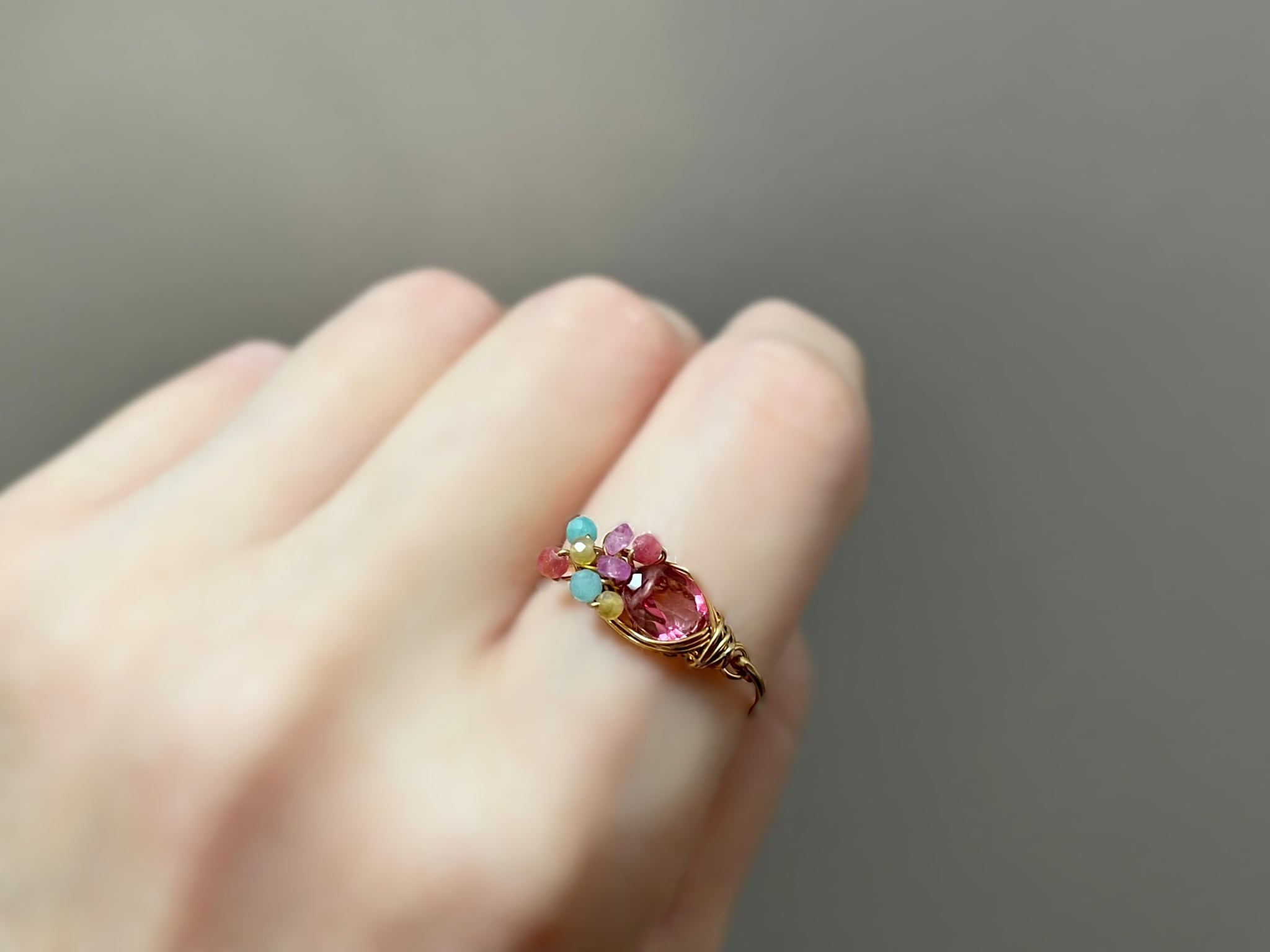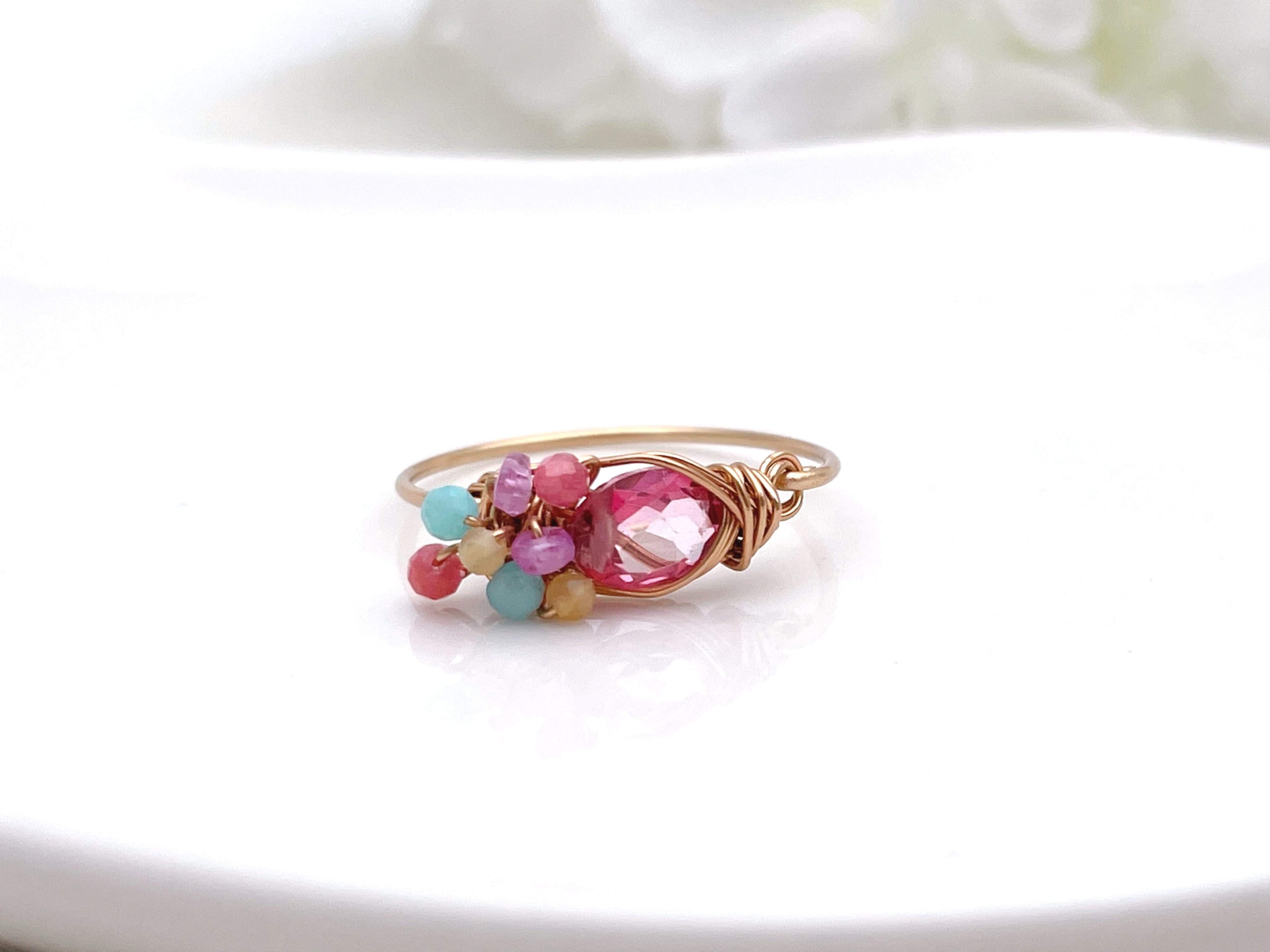 Marie's garden - ピンクトパーズと4種の小さな天然石のワイヤーリング