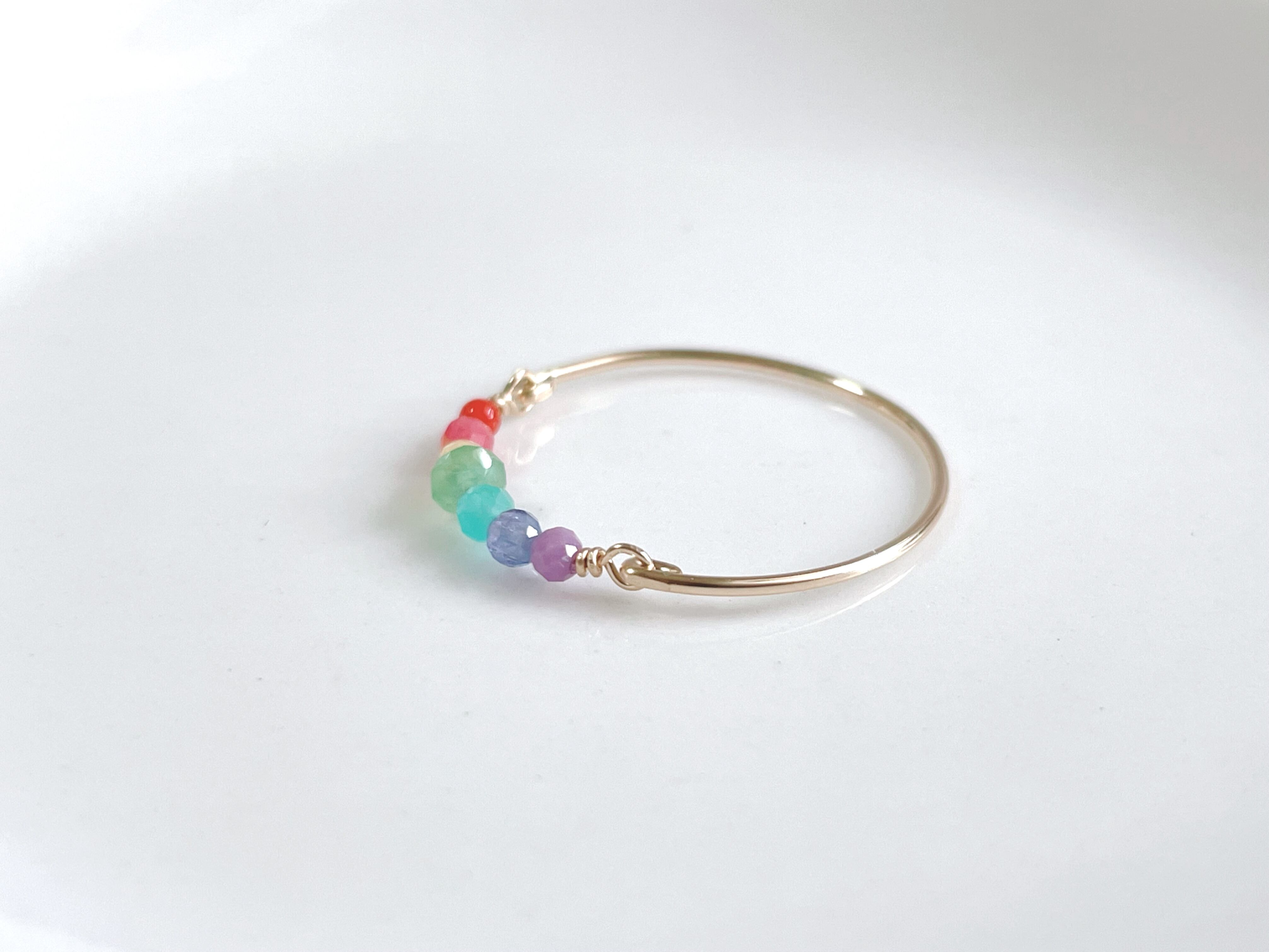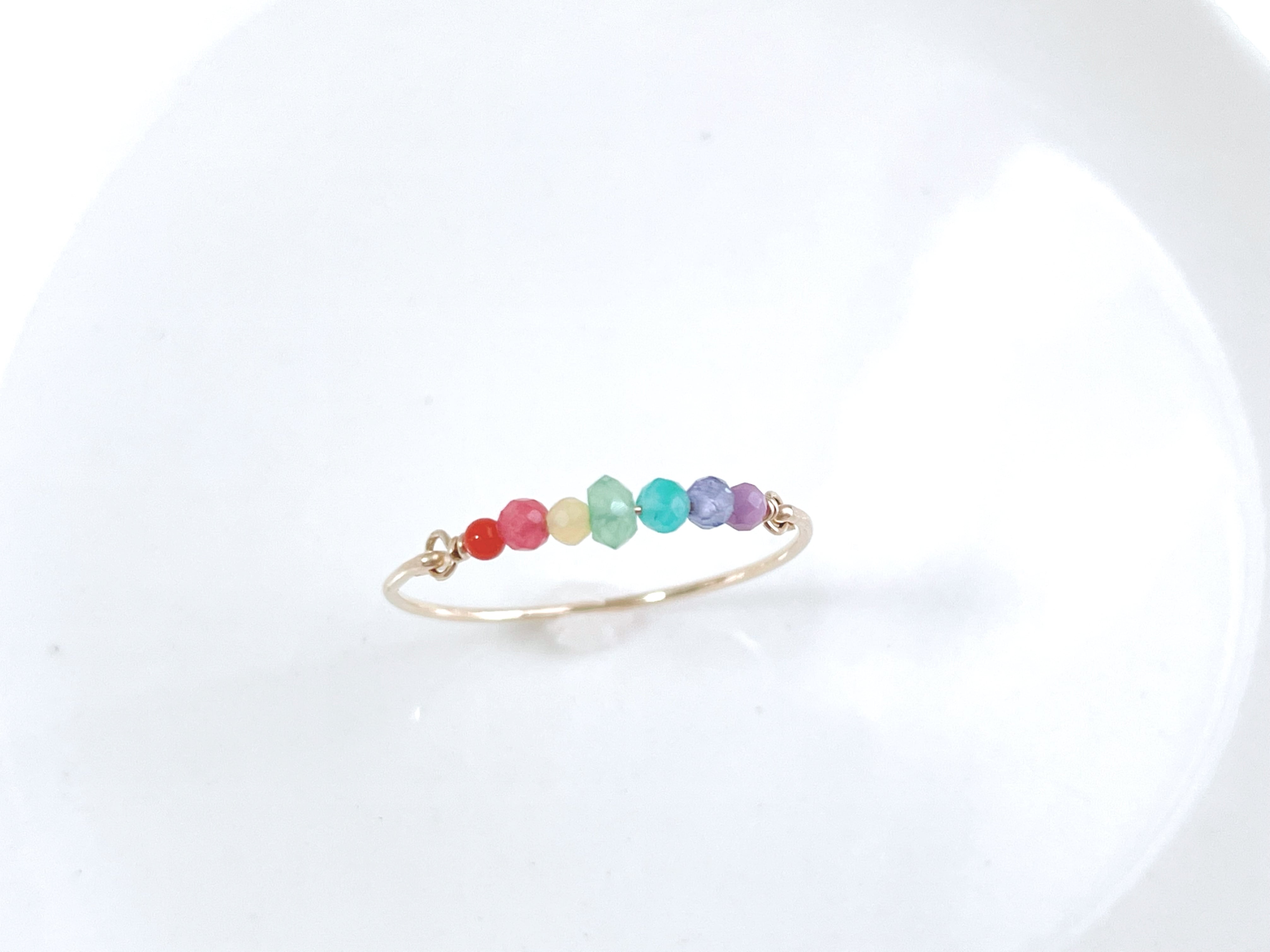 天然石たちの色彩が織りなす、七色のニュアンスリング。