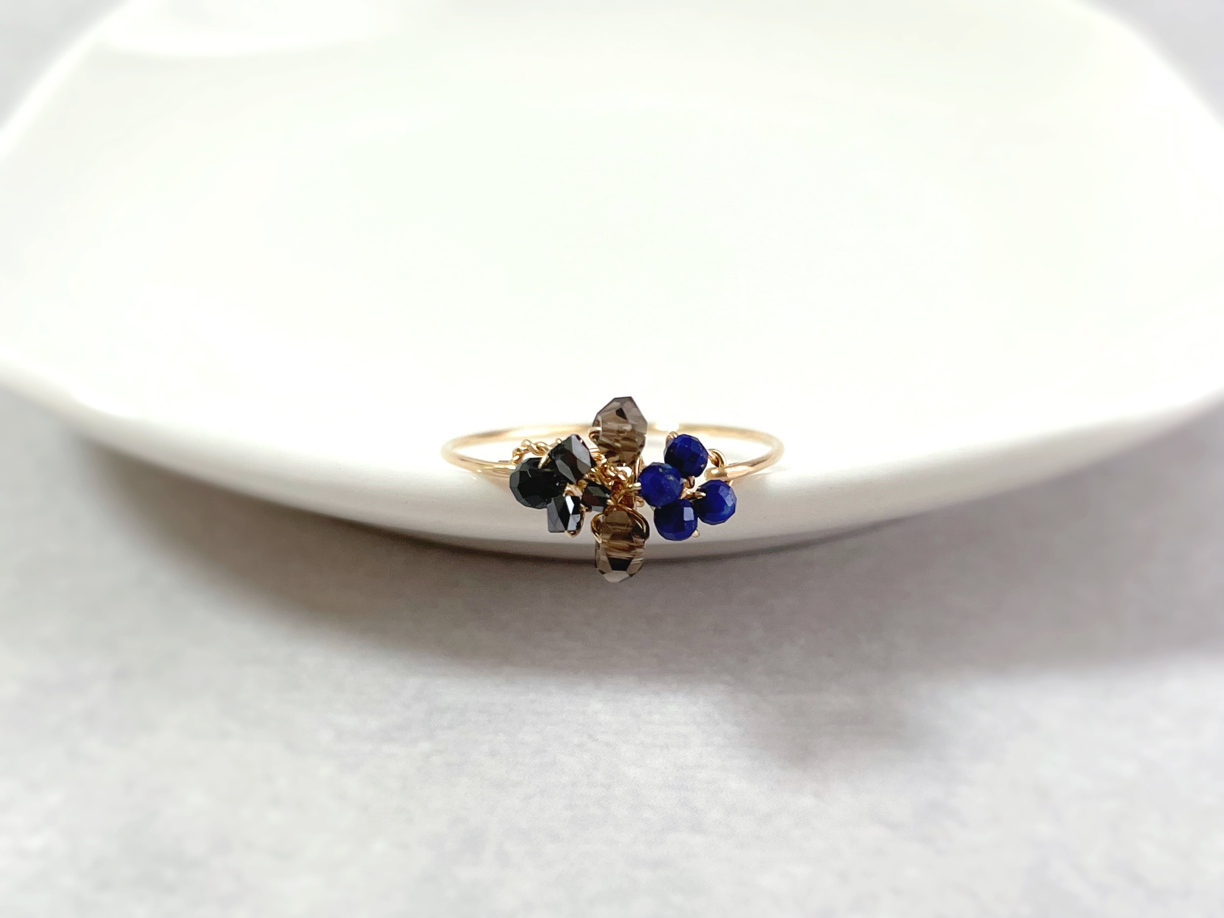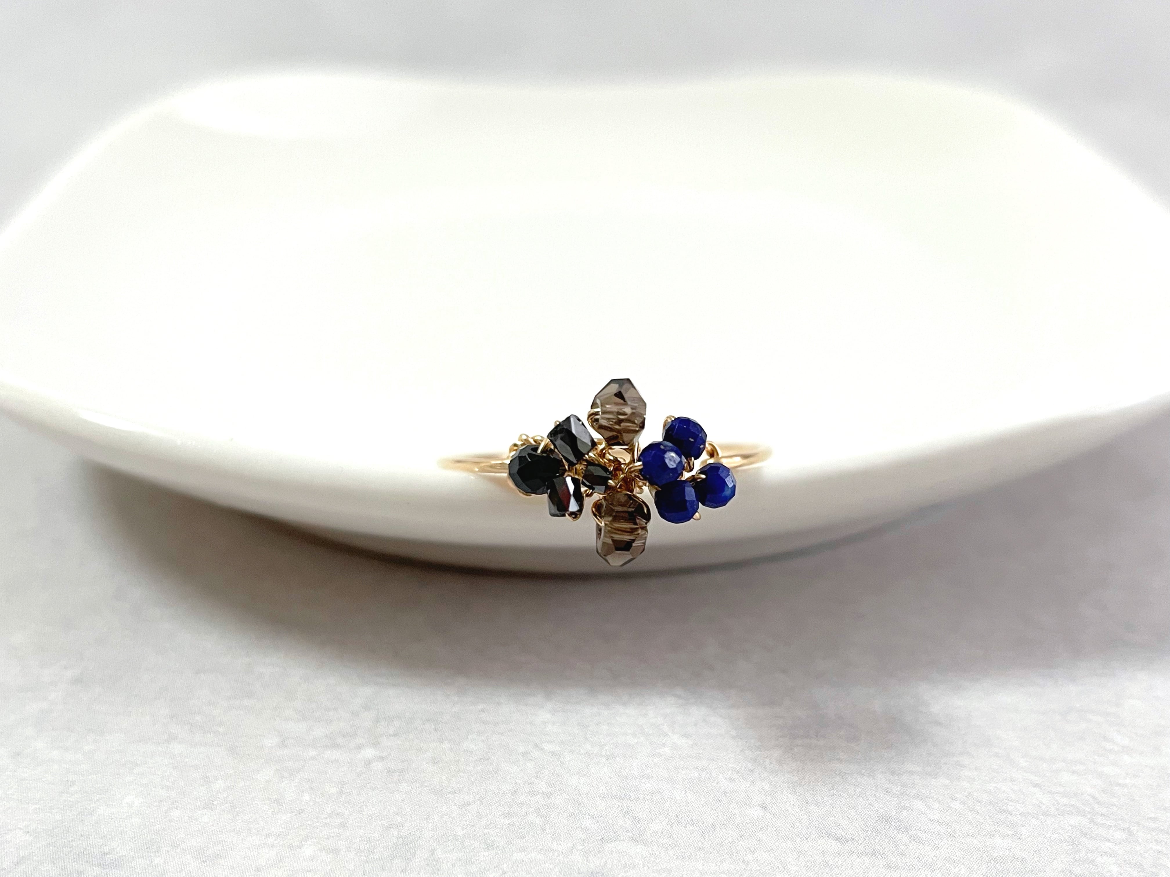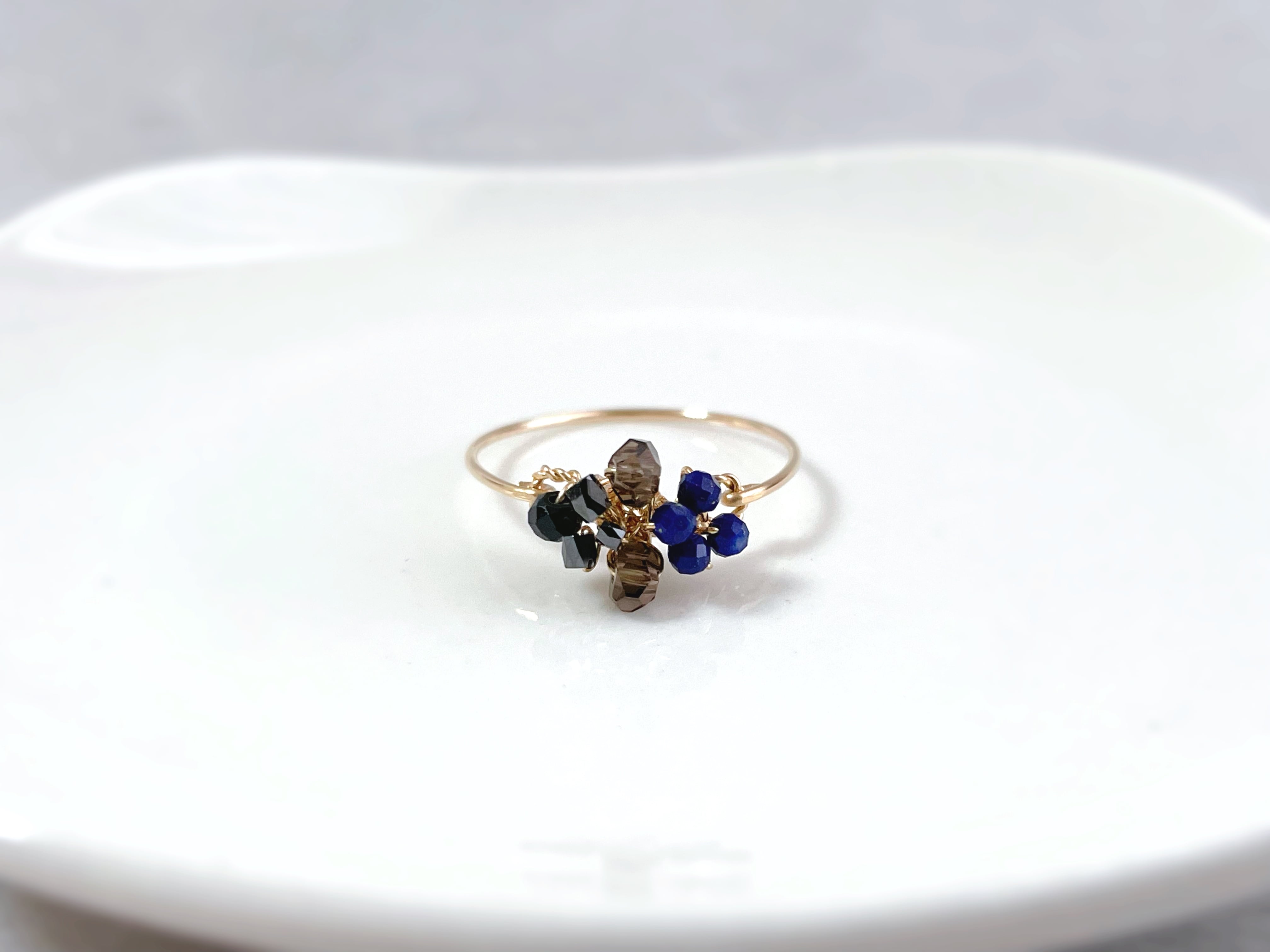 [14kgf]Bijou bouquet - ブラックダイヤモンド ブラックスピネル ラピスラズリ スモーキークォーツのワイヤーリング