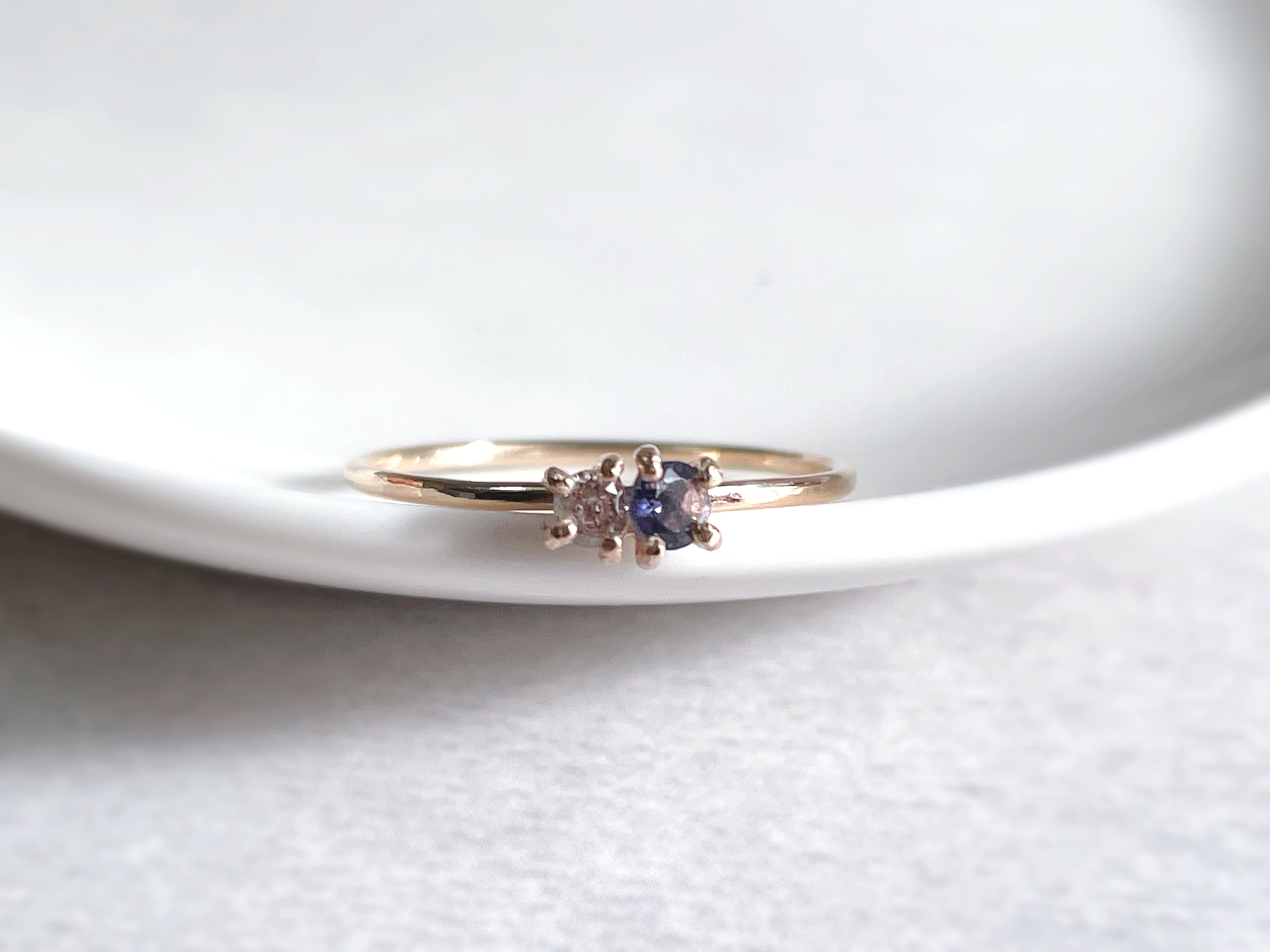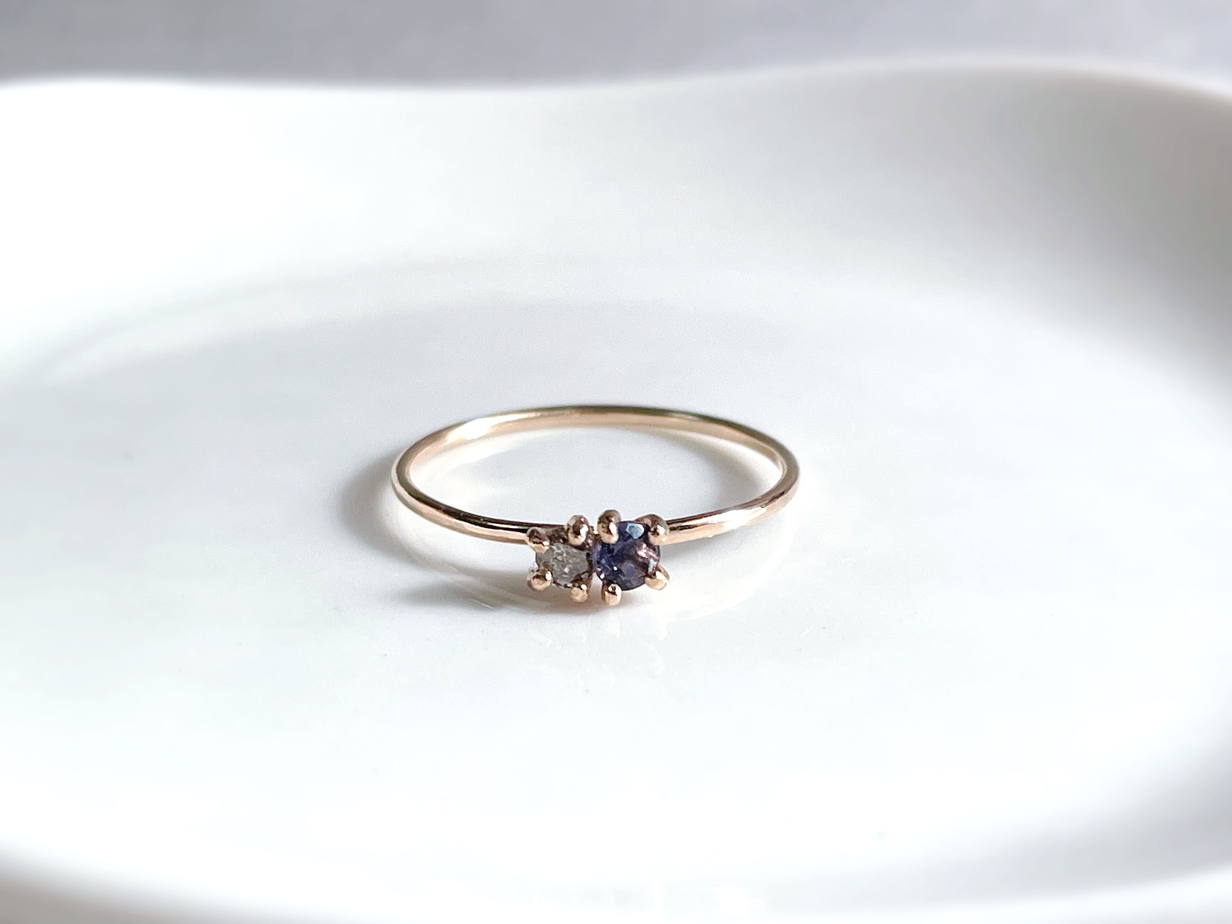 [14kgf]Petite luxe - ダイヤモンドとアイオライトのリング