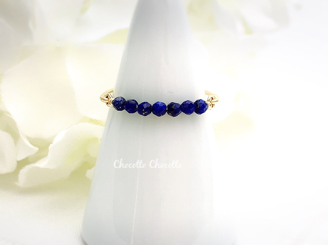 こちらは小粒のラピスラズリを7石使用したワイヤーリングです。