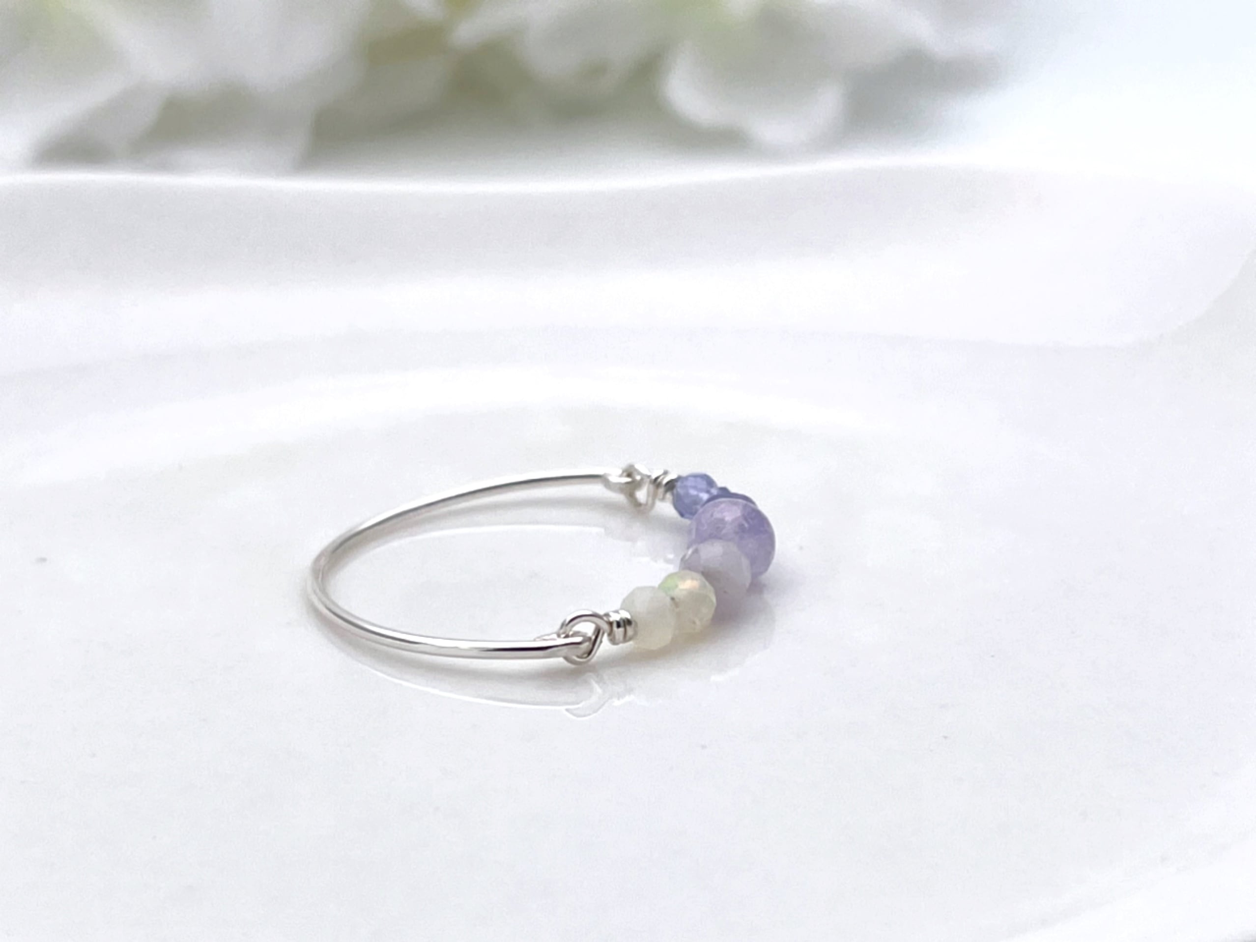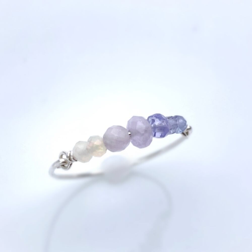 オパール、アメジスト、タンザナイトを用いたシンプルなワイヤーリングです。