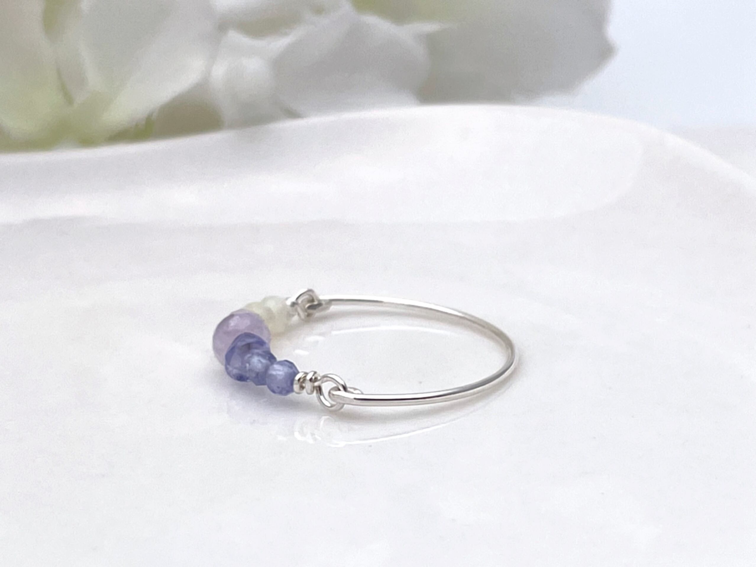 すみれ色のリング - 3種の天然石のワイヤーリング