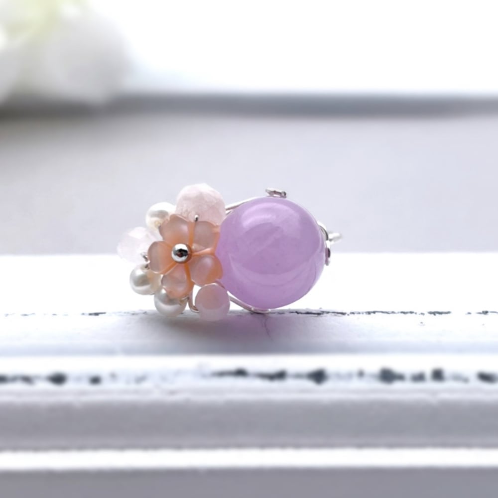 クンツァイト ピンクシェルと4種の天然石の指輪 桜