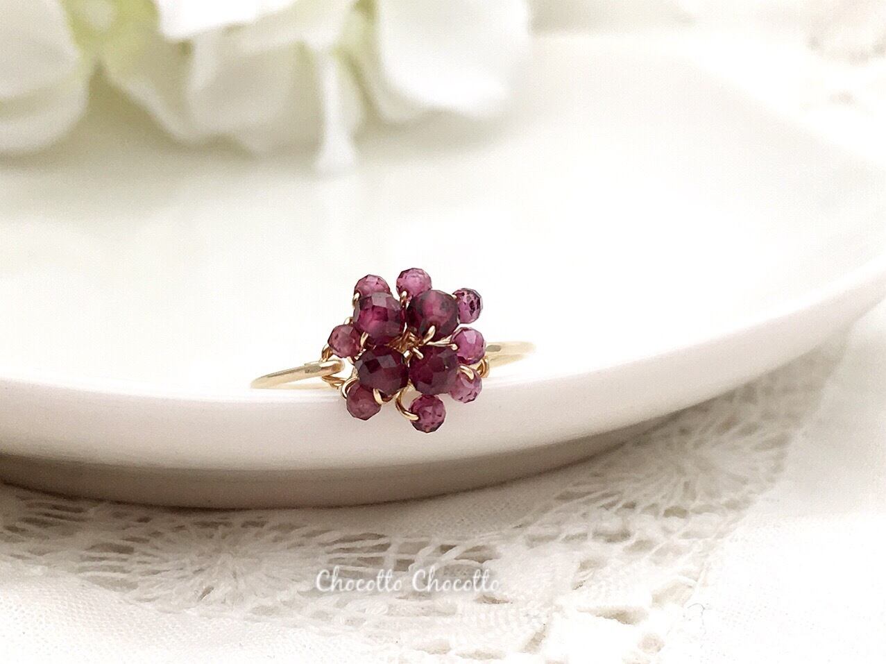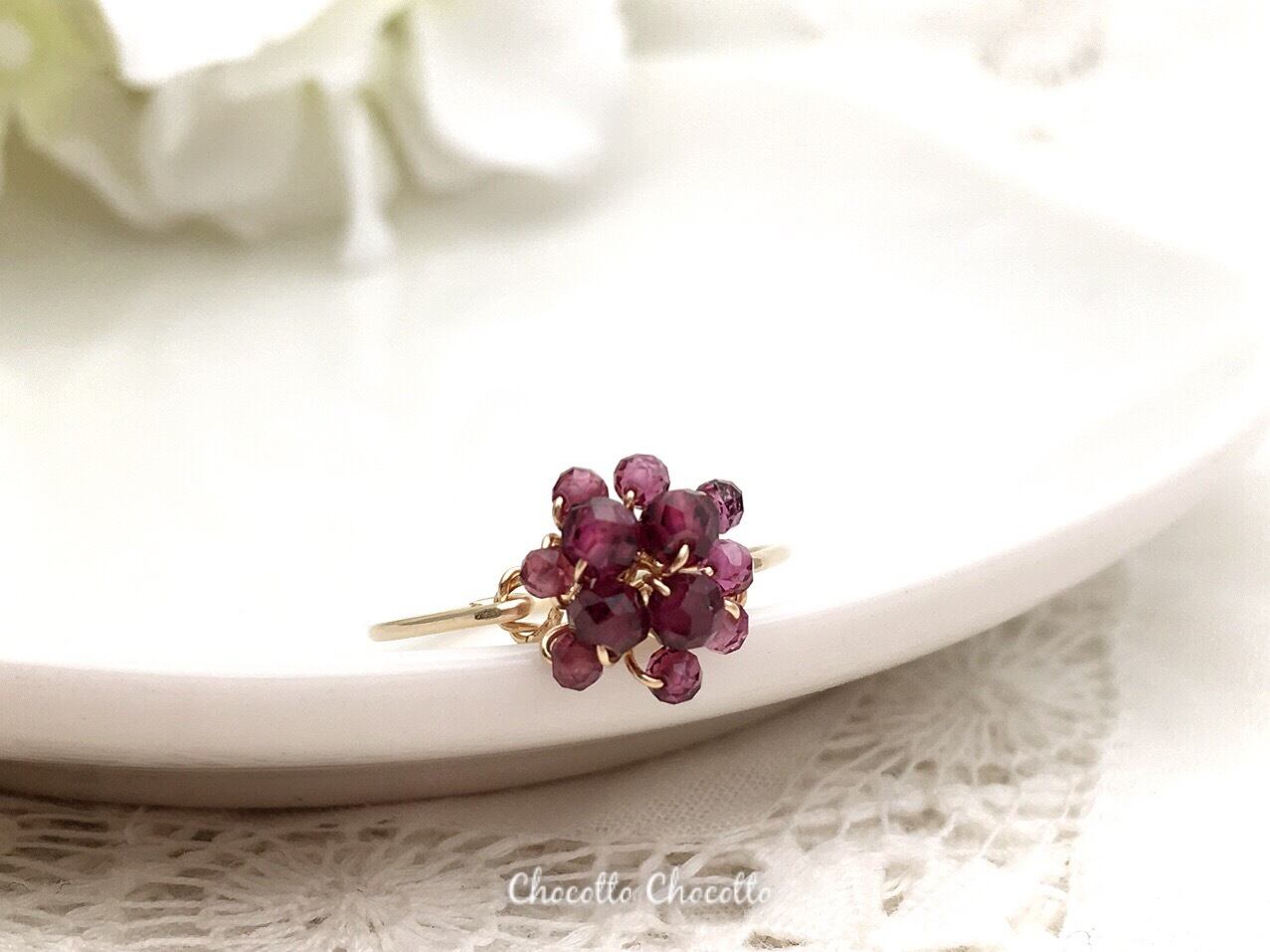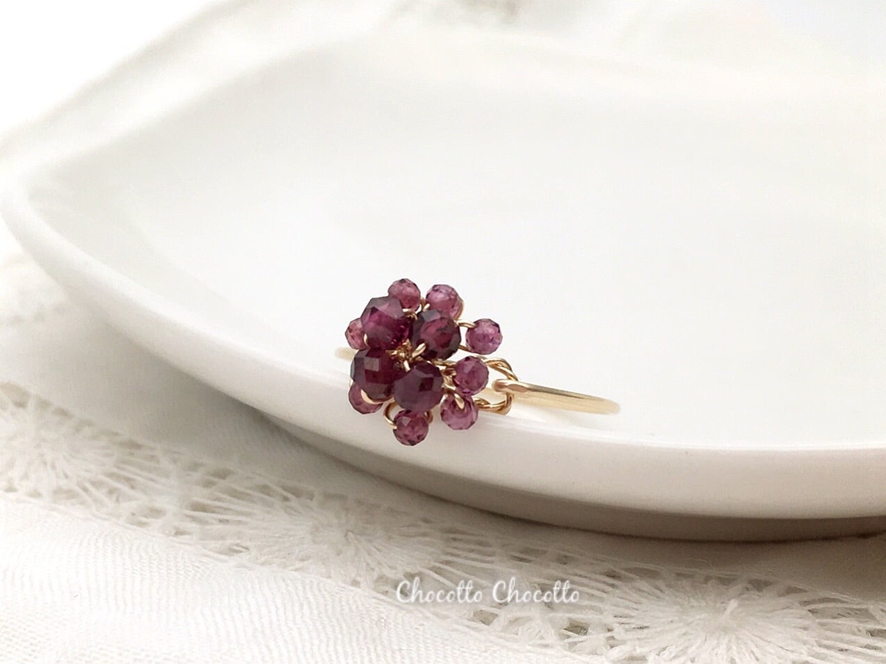 [14kgf] Bijou bouquet - ガーネットのワイヤーリング