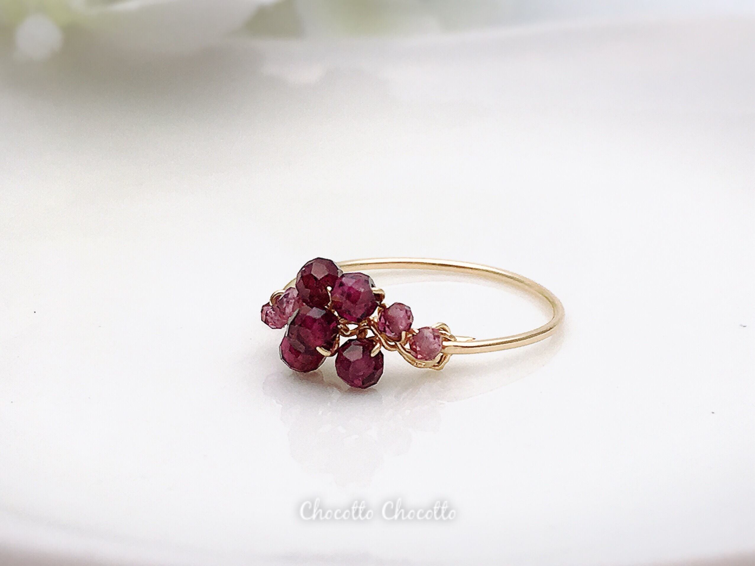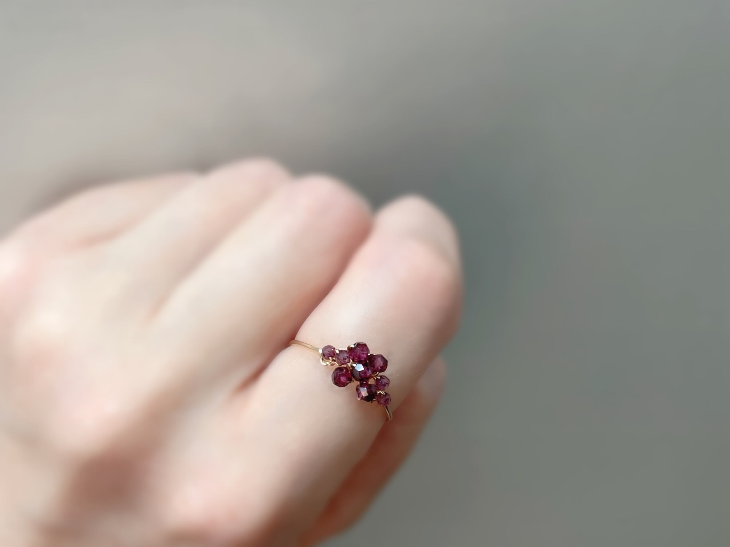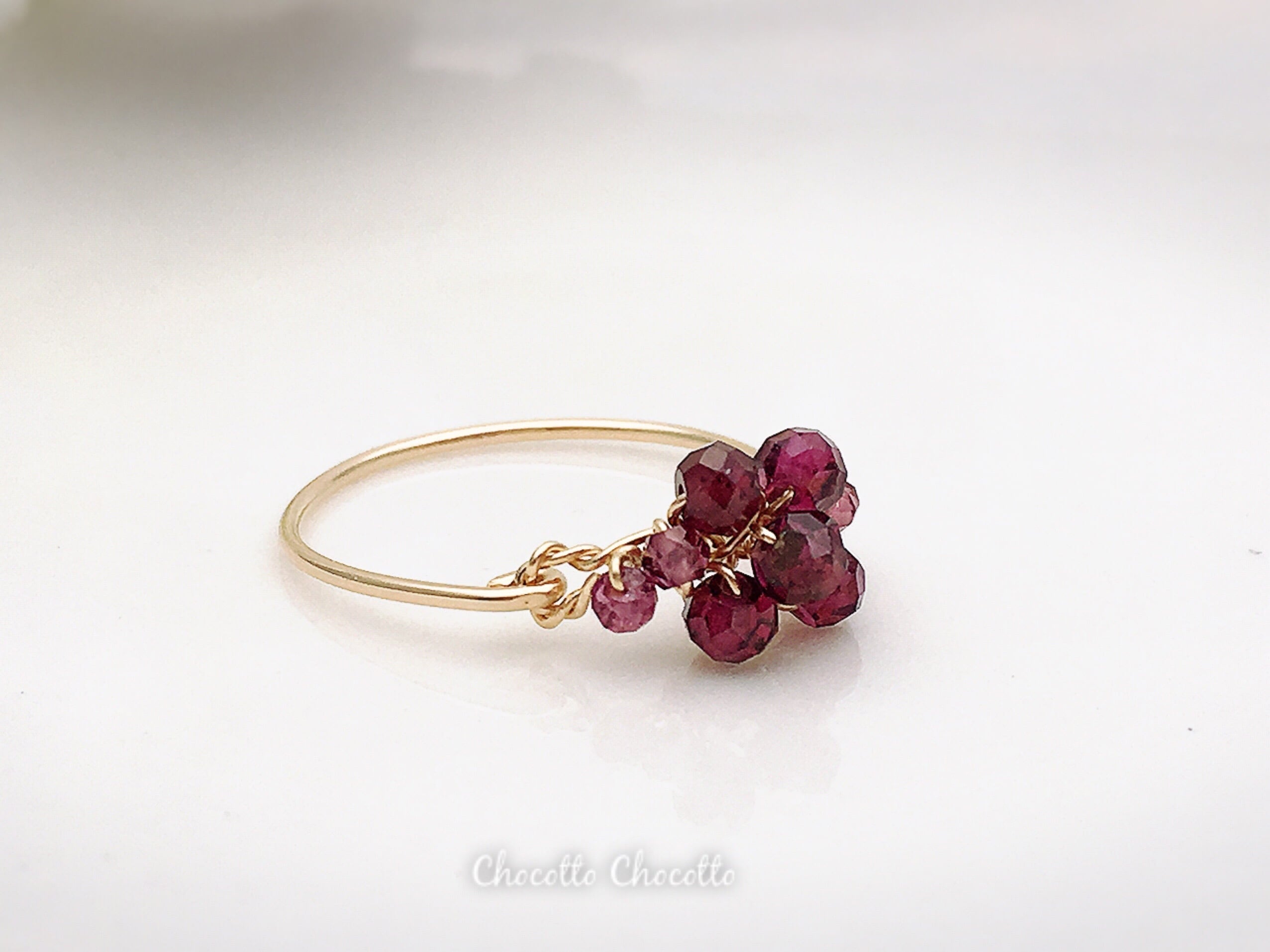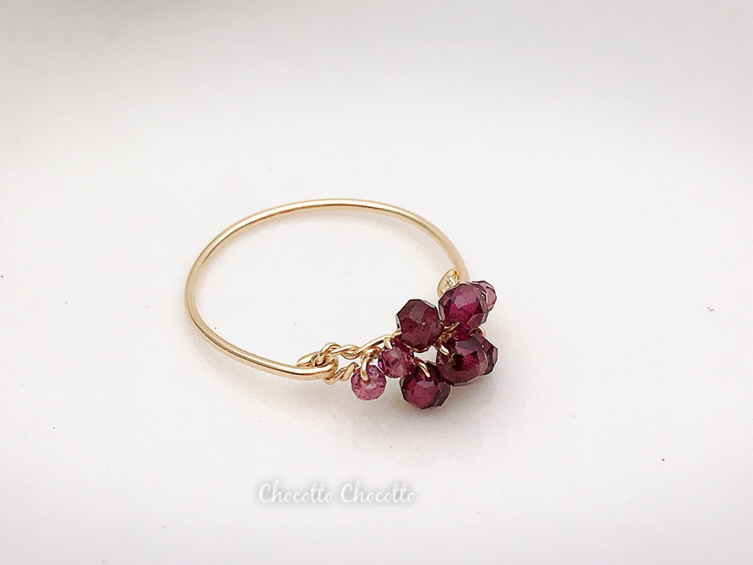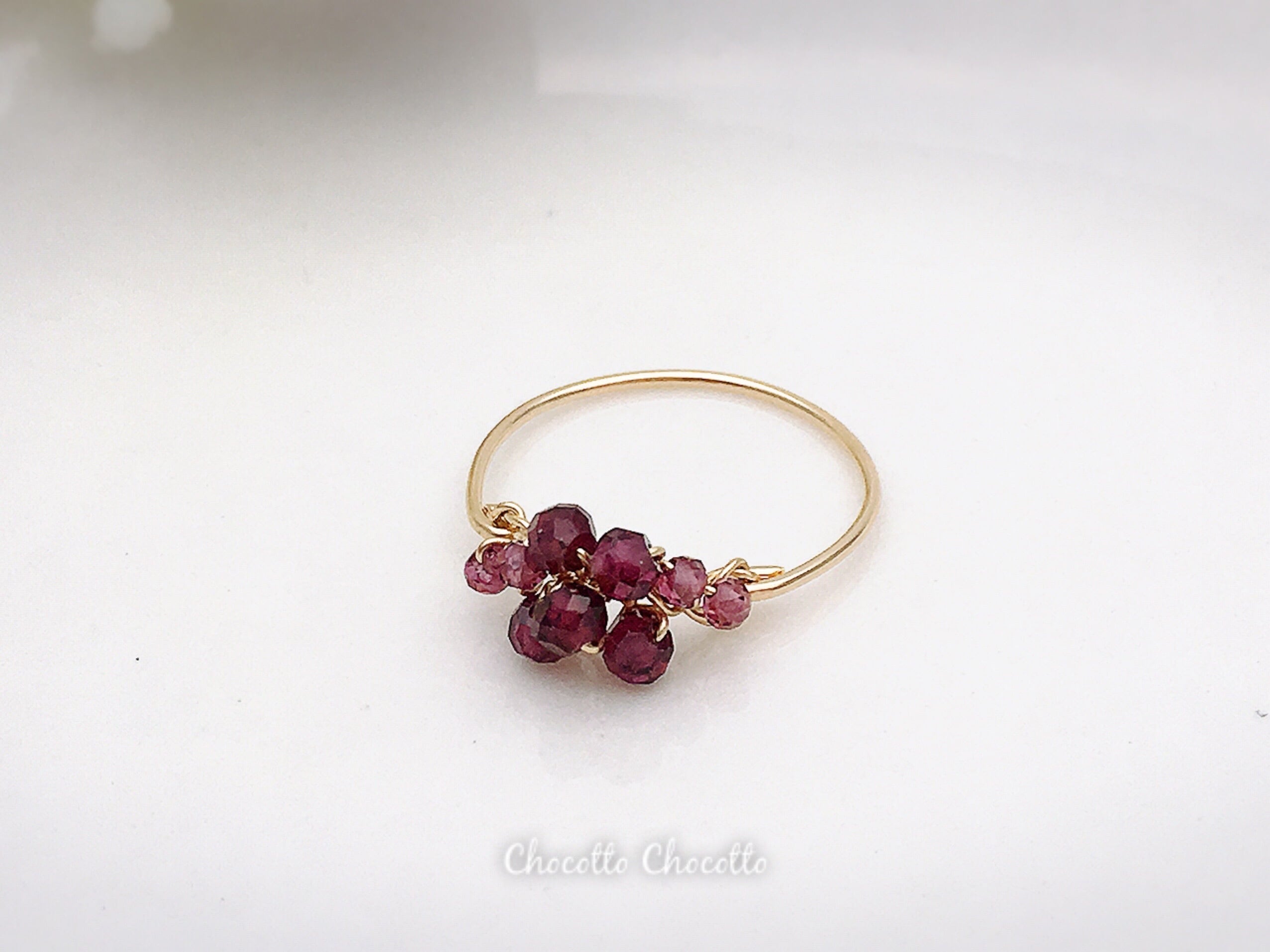 小さなロードライトガーネットでお作りしたワイヤーリングです。