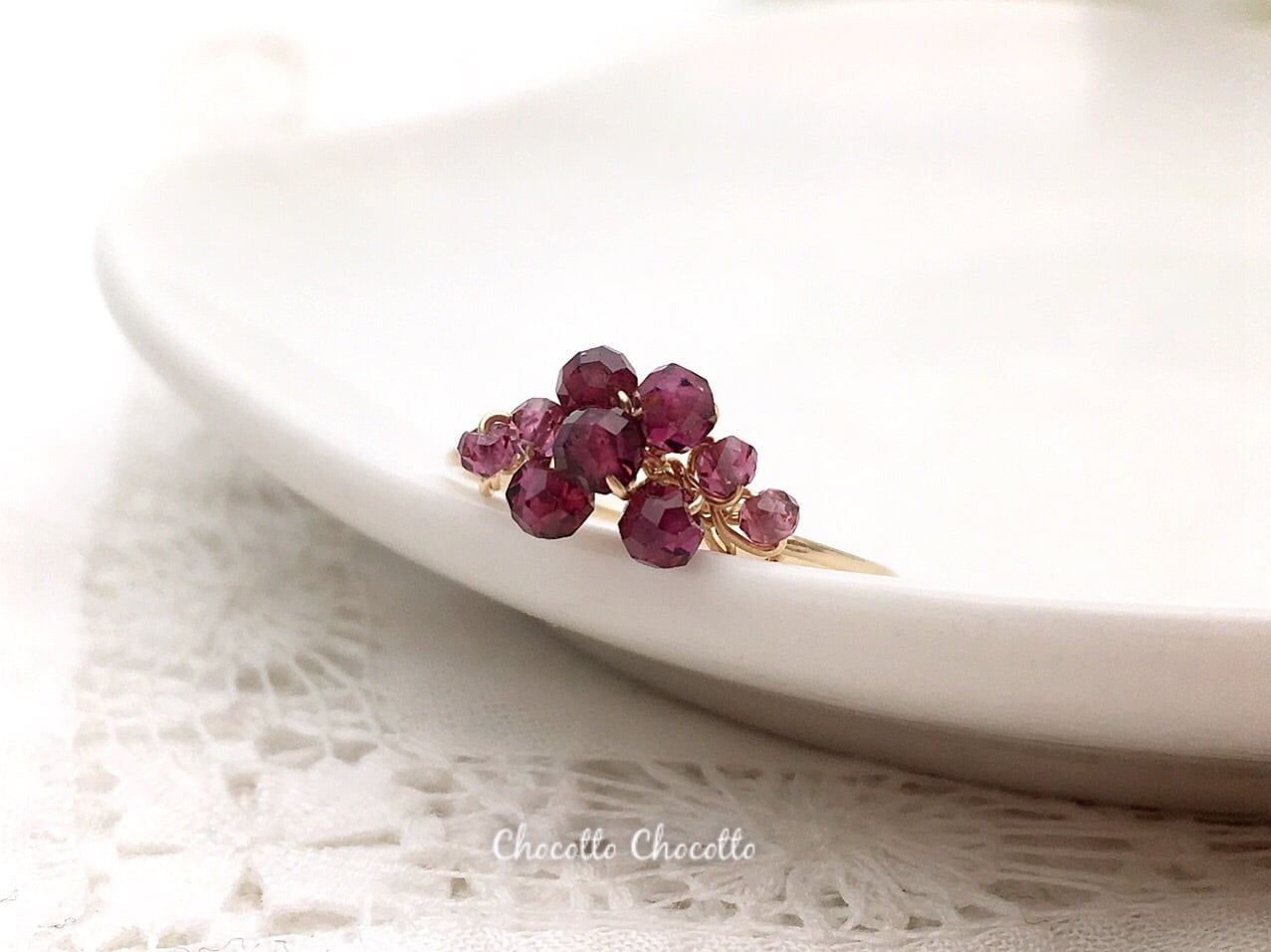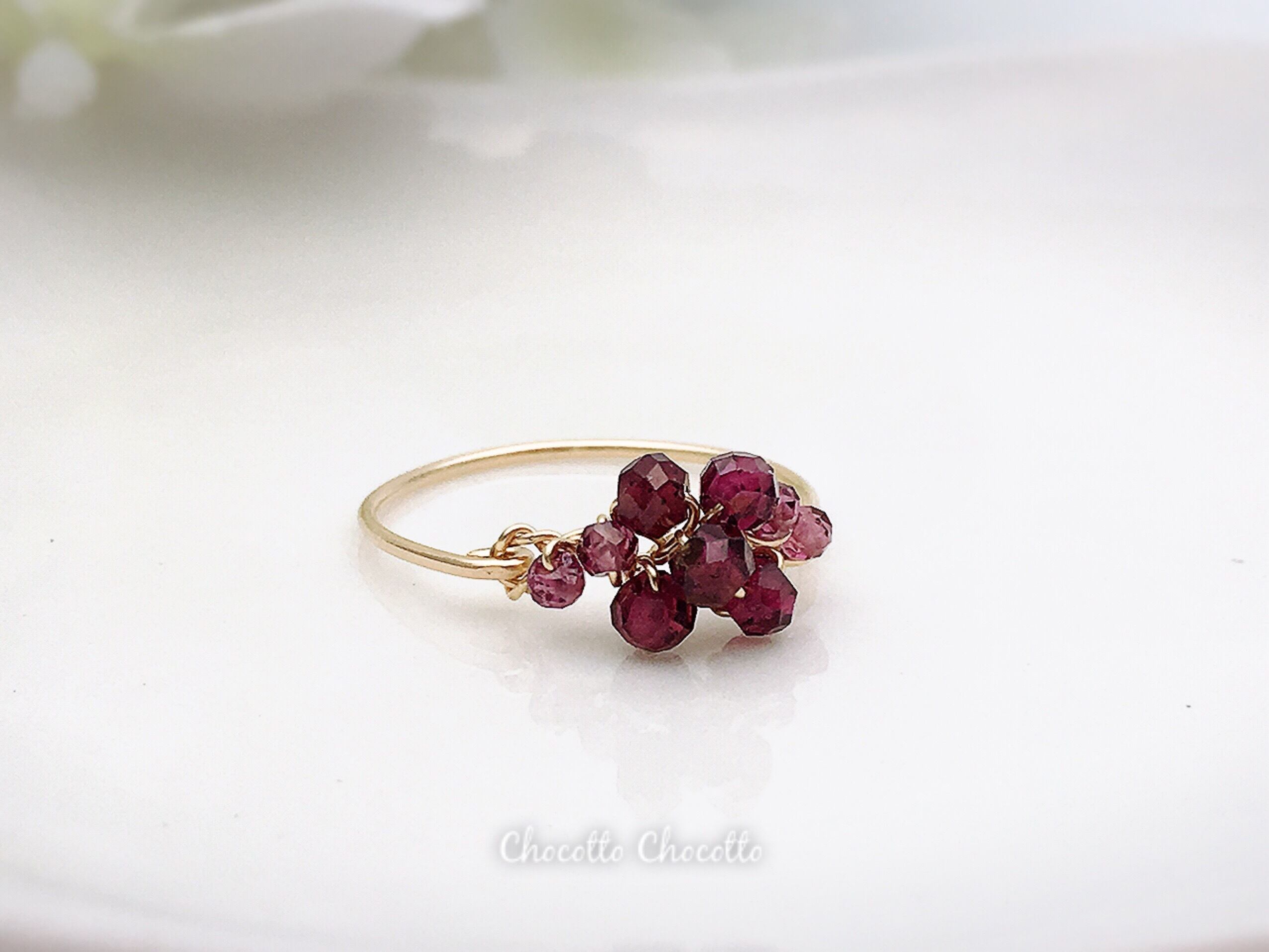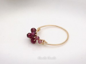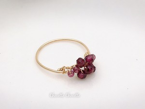「[14kgf]Floral - キラキラガーネットのワイヤーリング - ゴールドフィルド」
