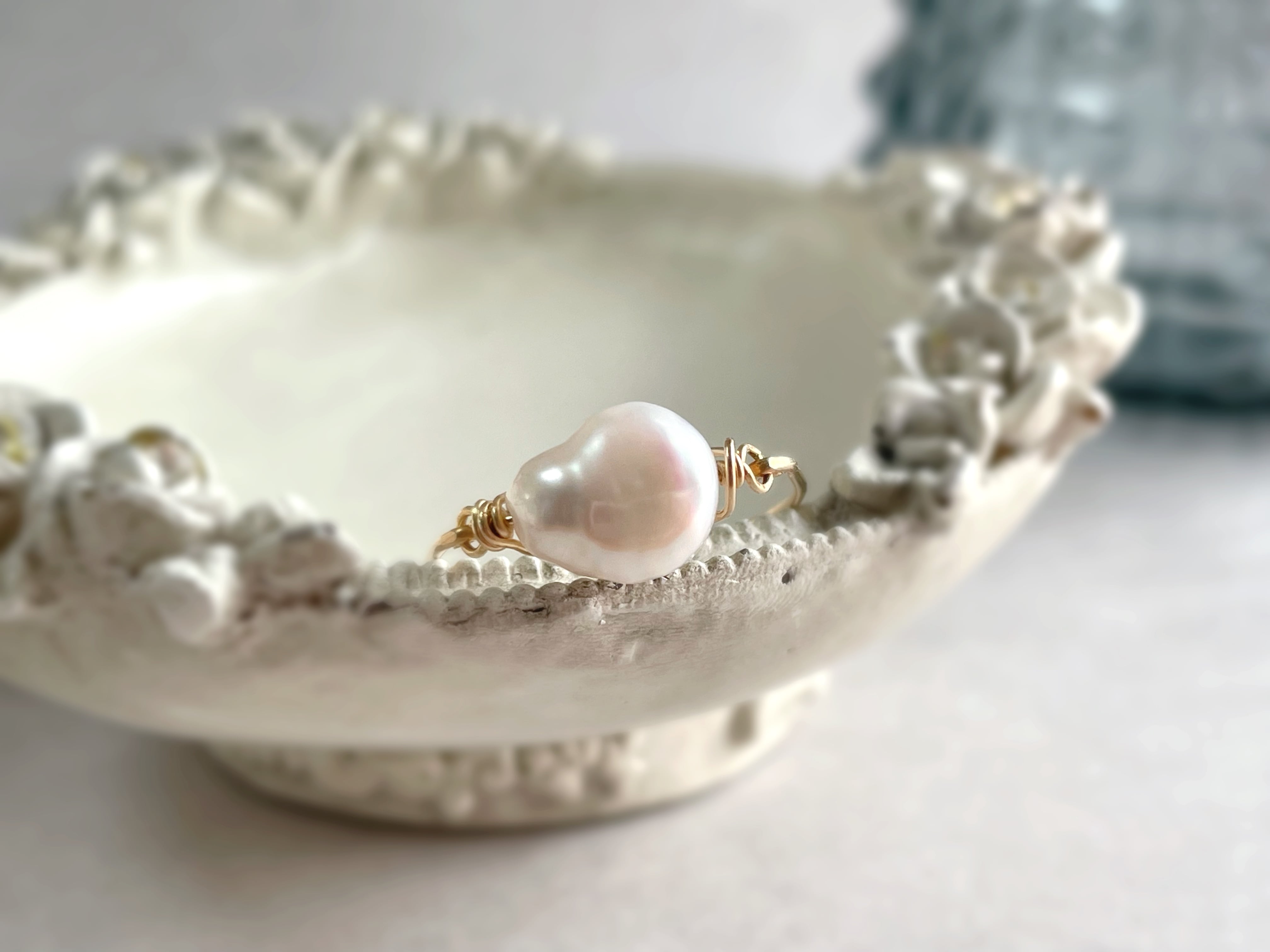 ひと粒のバロックパールを使用して丁寧にお仕立てしたワイヤーリングです。