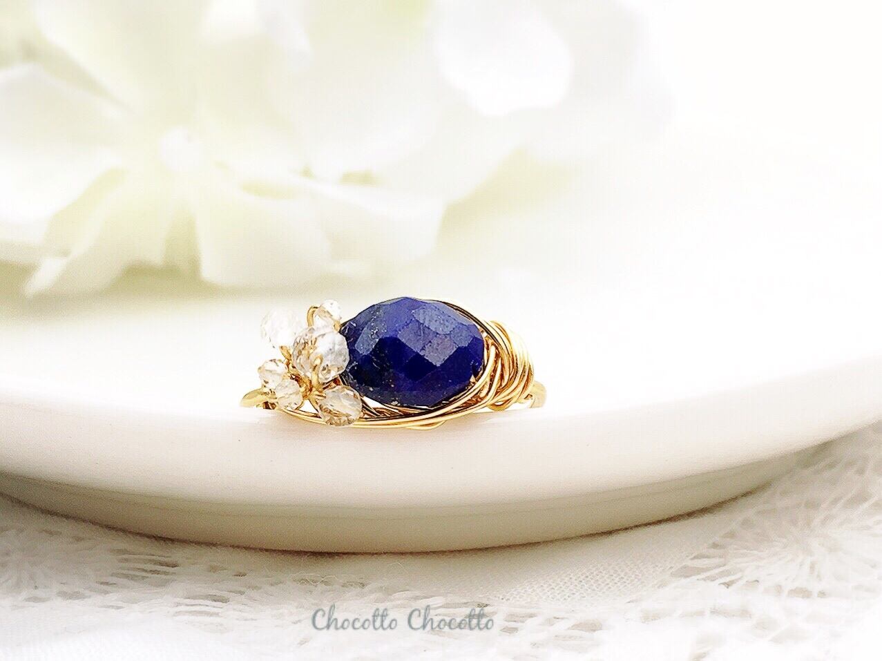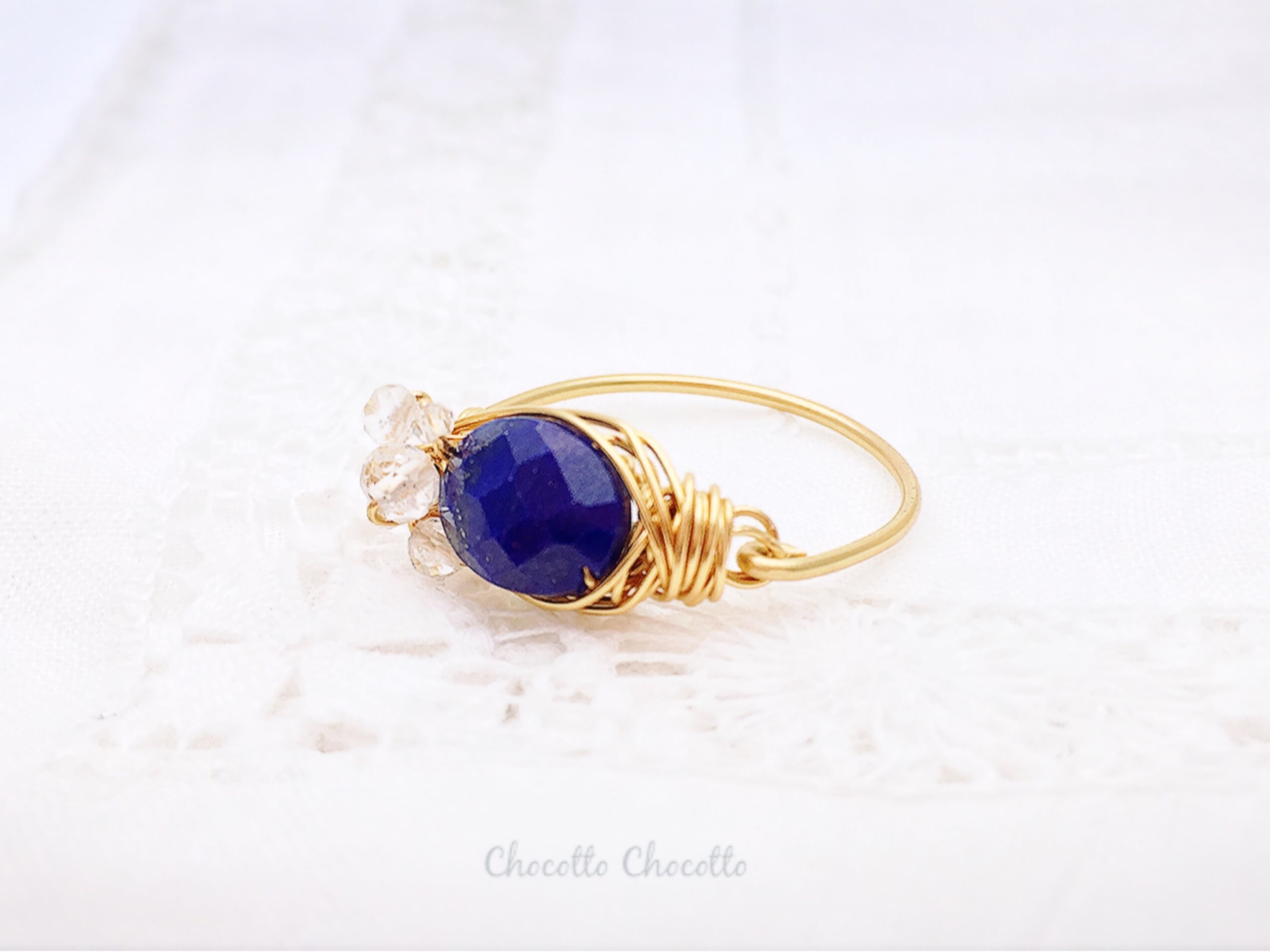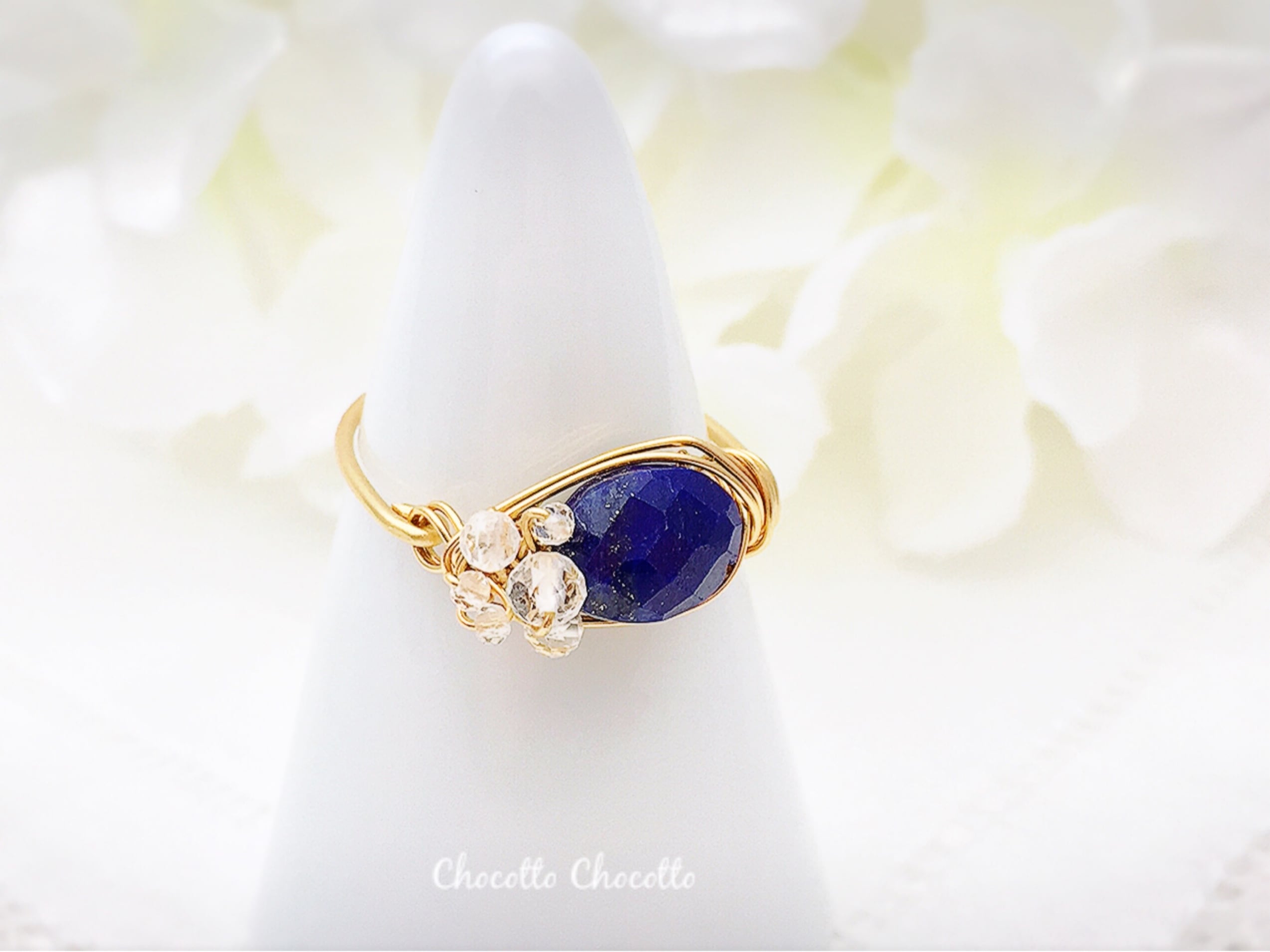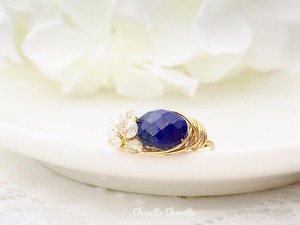 Marie's garden - raindrops - ラピスラズリとホワイトトパーズのワイヤーリング
